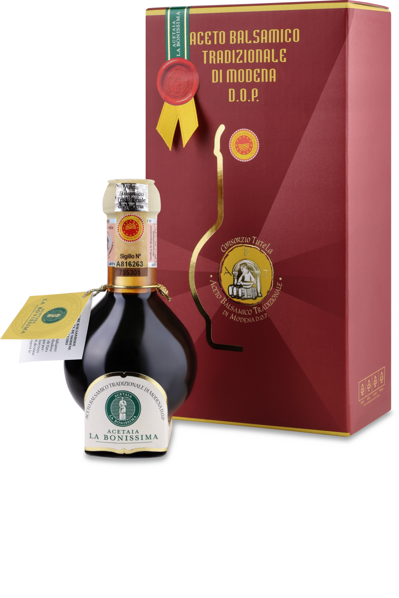 Derived from must cooked over direct flame in open vats of typical Modenese grapes, refined and aged for at least 12 years in small barrels made of various fine woods.