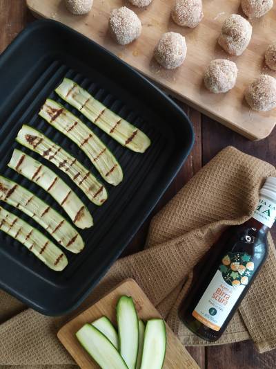 Intanto lessare i fagiolini, mantenendoli al dente, tagliare le zucchine a fettine e passarle sulla griglia da ambo i lati.